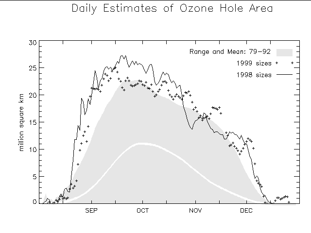 with last year's (solid line) and with the entire Nimbus 7 TOMS climatology