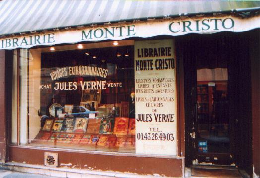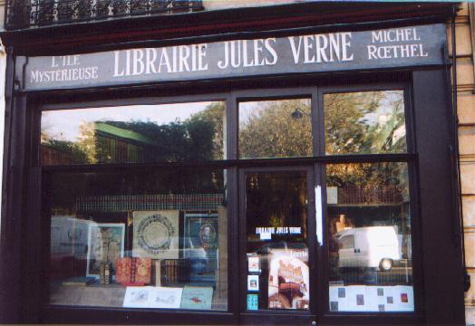 Naar ik later heb vernomen zijn dit de twee bekendste Jules Verne winkels van Parijs en de boeken zijn er haast onbetaalbaar; kennelijk gaan de prijzen omhoog naarmate er meer belangstelling voor boeken van Jules Verne komt, vooral wat oude uitgaven betreft. De winkel van Michiel Roethel (links) kom je alleen binnen met een afspraak; de andere misschien ook wel. Blijkbaar is een antiquariaat heel winstgevend ....