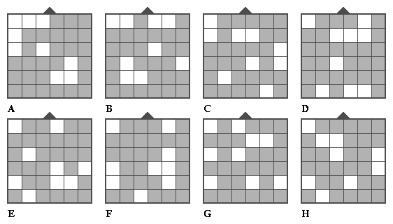 En dan nu een prijsloos quizje. Welke van de volgende 8 roosters zouden bruikbaar zijn voor het maken van een codebericht?