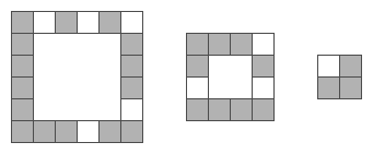 * de ring met N=4 vakjes per zijde heeft 12 vakjes, waarvan 3 open