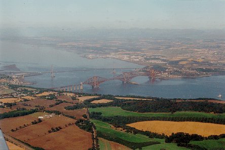 Forth Bridges seen from an aeroplane that has just left Edinburgh airport.